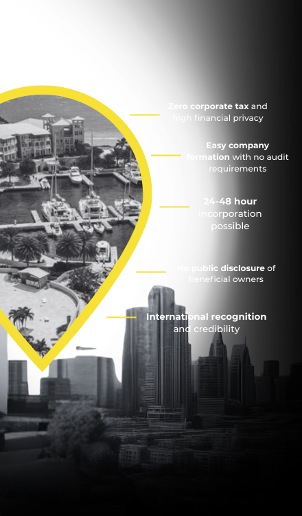 Zero corporate tax, high privacy, no audits, easy 24-48 hour formation, no public beneficial owner disclosure, and international recognition.